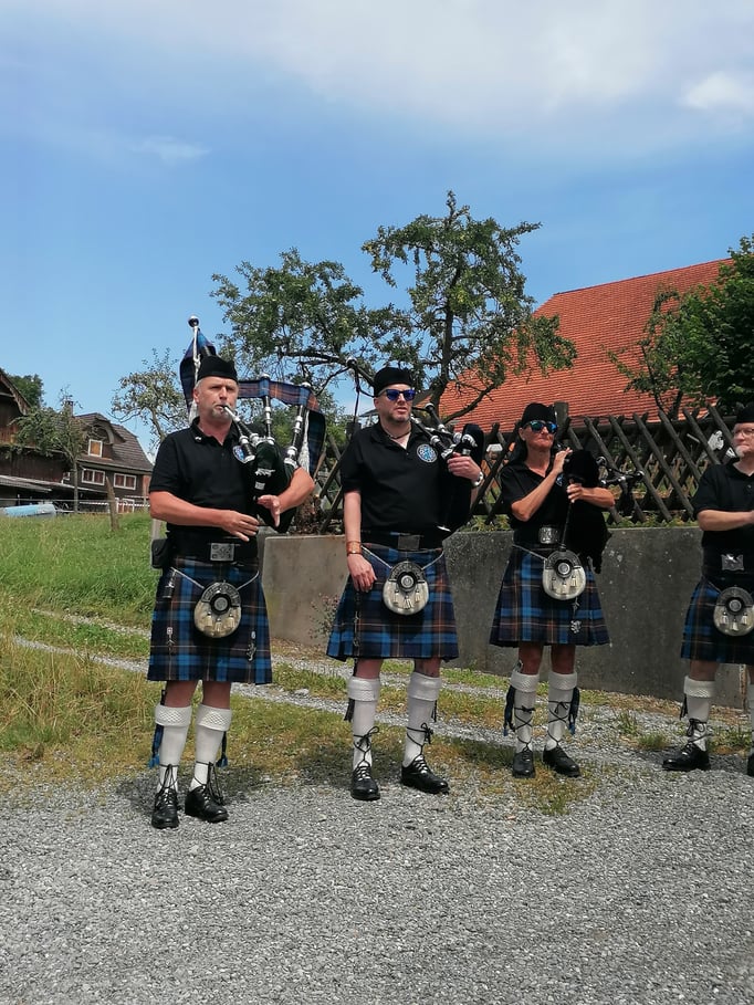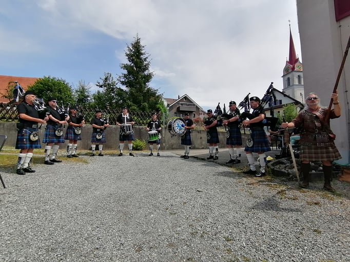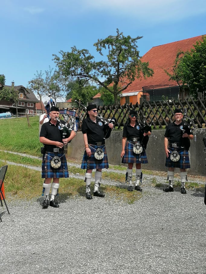 Am Sonntag starteten wir hinter dem Adler im Festzelt mit einem Frühschoppenkonzert der Musikgesellschaft Kleinwangen-Lieli. Bei Köstlichkeiten vom Grill und einer grossen Salatauswahl folgten abwechselnd musikalische Darbietungen vom Männerchor Kleinwangen und von der Pipe- und Drumband THE CLAN. Wir verwöhnten unsere Gäste unter anderem auch mit Magenbrot, Kuchen, Crèmeschnitten, Glaces, Röteli und einer Whisky-Bar. Ein herzliches Dankeschön an dieser Stelle den verschiedenen Sponsoren.